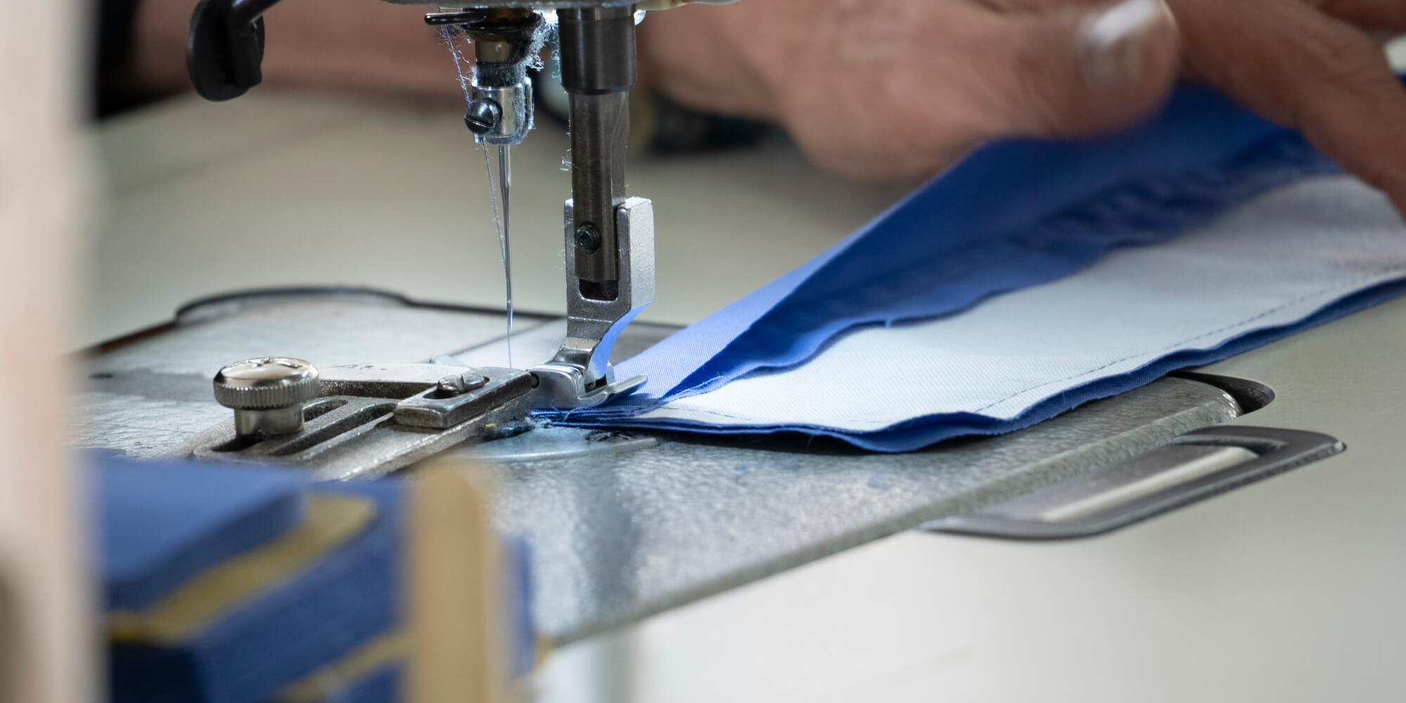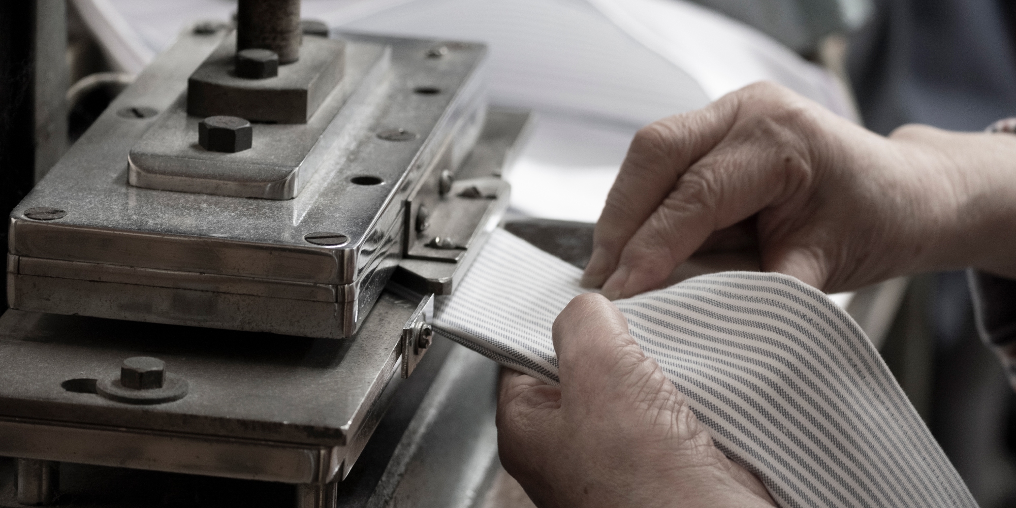 通常5~7mmが一般的な折り伏せ縫いを、BASICシリーズでは 3mm幅で仕上げています。この仕様により縫い目のパッカリングが起きにくく、表裏ともに美しい見た目が実現されています。ロックや巻き縫いと比べると工程が多く、非常に手間のかかる縫製方法ですが、職人の技術と長年の経験から生まれた独自のミシン押さえの開発によって、安定したクオリティで作り続けることを可能にしています。