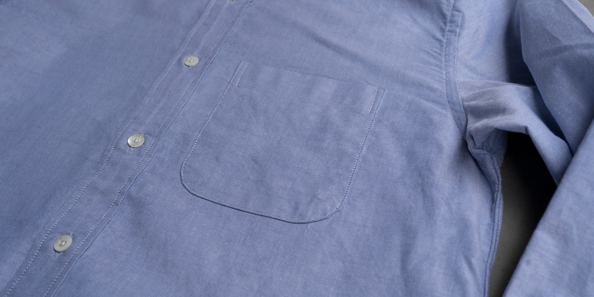 着丈はタックイン・アウトのどちらにも対応できるよう、日常的な着用シーンを想定したバランスに設定。衿まわりは首元に沿う角度や立ち上がりを細かく検証し、ボタンダウンは着用時に安定した美しいロールが出る設計に。レギュラーカラーはやや小ぶりながらも、存在感を損なわない大きさに整えています。